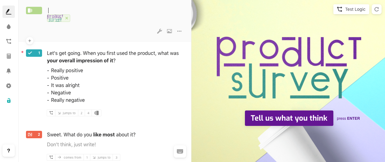 Users can create complex questions that do not require any coding to receive quick and accurate responses. The tool is ideal for product teams because it allows — sharing of surveys, team analysis, custom graphics, and easy data exporting.